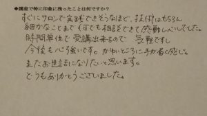 すでにサロンで実践できそうなほど、技術はもちろん細かなことまで何でも相談できて感動レベルでした。